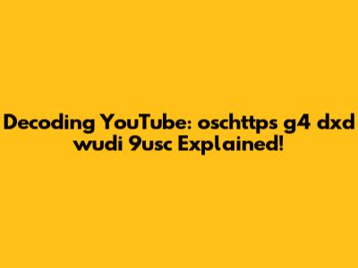 Decoding YouTube: Oschttps G4 Dxd Wudi 9usc Explained!