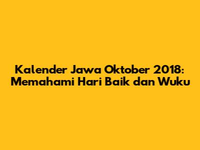 Oktober 2018 dalam Kalender Jawa menyimpan berbagai informasi penting mengenai hari baik, wuku, dan pranata mangsa. Bagi masyarakat Jawa yang masih memegang teguh tradisi, kalender Jawa bukan sekadar penunjuk waktu, melainkan juga pedoman dalam menentukan berbagai kegiatan penting. Yuk, kita selami lebih dalam kalender Jawa Oktober 2018!